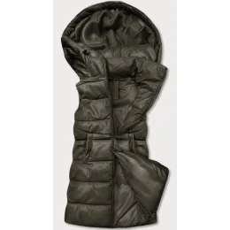 Teplá dámska vesta v army farbe z eko kože (D-3231-22)