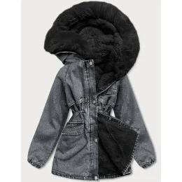 Čierna dámska džínsová bunda s kožušinovou podšívkou (br8048-101)