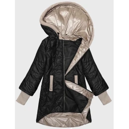 Čierna dámska prešívaná bunda s ozdobným sťahovacím lemom S'West (B8345-1)
