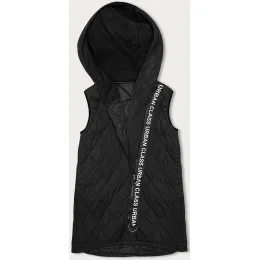 Čierna dámska prešívaná vesta s ozdobnou páskou (16M9118-392)
