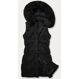 Čierna dámska vesta s kapucňou a kožušinovým lemom J Style (16M9172-392)