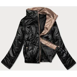 Čierna krátka dámska bunda so stojačikom (B8122-1)