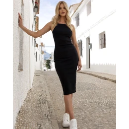 Tieto šaty sú vyrobené z rebrovaného materiálu a majú ramienka, ktoré sa na chrbte krížia. Majú dĺžku do polovice lýtok.
