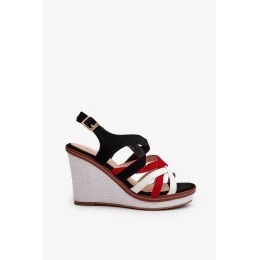 Jedinečné dámske sandále na platforme a klínku. Zvršok je vyrobený z ekokože. Pruhy sú prepletené, čím vytvárajú jedinečný efekt. Topánky majú mäkkú stielku z ekokože. Sandále sa zapínajú okolo členka pomocou pracky s nastaviteľným remienkom. Podrážka je z plastu a je protišmyková, zatiaľ čo klin a platforma sú zdobené opletením. Pri výbere veľkosti sa riaďte tabuľkou veľkostí.