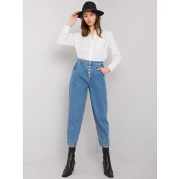 Modré džínsové nohavice pre mamičky s gombíkmi .