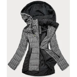 Čierno-biela vzorovaná dámska bunda s kapucňou (W715)