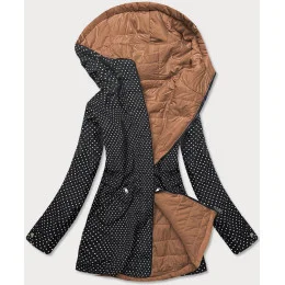 Čierno-karamelová obojstranná dámska bodkovaná bunda (M-111)