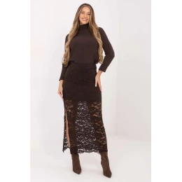 Elegantná a ženská čipkovaná sukňa, ktorá je ideálna do práce aj na formálne udalosti. Je vyrobená z kvalitnej zmesi polyesteru, elastanu a viskózy, je elastická, ľahká a pohodlná. Model v midi dĺžke má vsadený elastický pás pre pohodlné nosenie a ozdobné mašle na prednej strane, ktoré dodávajú sukni jedinečný charakter. Celkový vzhľad je zhotovený z ažurovej čipky a spodný diel v hornej časti zaručuje pohodlie a elegantné zakončenie. Sukňa sa bez zapínania ľahko oblieka a dokonale sa prispôsobí postave. Je to nadčasový model pre ženy, ktoré oceňujú kombináciu elegancie a pohodlia pri každodennom aj formálnom nosení.