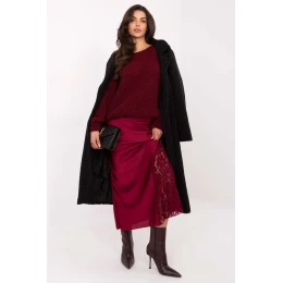 Elegantná sukňa v tvare morskej panny z látky s pestrou štruktúrou je ideálnou voľbou na každodenné nosenie, ako aj na slávnostné udalosti. Je vyrobená z vysokokvalitnej zmesi polyesteru, viskózy a elastanu, krásne sa prispôsobí postave a zvýrazní ženské tvary. Elastický pás zaručuje pohodlné nosenie a dokonalé prispôsobenie bez potreby zapínania. Bez zapínania je sukňa mimoriadne pohodlná a ľahko sa oblieka. Jemný čipkový výstrih na ľavej strane v spodnej časti dodáva celku jemný, ženský charakter a zdôrazňuje elegantný štýl modelu. Vďaka dĺžke midi a mierne rozšírenému lemu v tvare morskej panny je sukňa dokonale kombinovateľná s košeľou do práce, ako aj s elegantnou blúzkou na stretnutie alebo večierok.