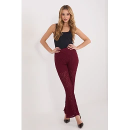 Tieto elegantné dámske čipkované nohavice sú jedinečným modelom, ktorý spája štýl a pohodlie. Sú vyrobené zo zmesi viskózy a elastanu a vyznačujú sa pestrou štruktúrou materiálu, ktorá im dodáva jemne dekoratívny charakter. Rovný strih nohavíc a dlhé nohavice vytvárajú nadčasovú a zúženú siluetu. Na pohodlné nosenie je vložený elastický pás a absencia zapínania a vreciek zdôrazňuje minimalistický, elegantný štýl. Nohavice sú v hornej časti podšité, čo zvyšuje pohodlie pri nosení a zabezpečuje ideálne rozloženie materiálu. Tento model je ideálny na každodenné nosenie, ako aj na slávnostné príležitosti alebo večierky, ktorým dodáva eleganciu a rafinovanosť.