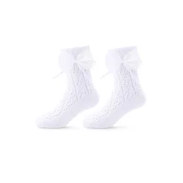 Detské ažurové ponožky s mašľou. Zloženie: 72 % bavlna, 24 % polyester, 4 % elastan.