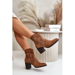 Členková obuv s čipkovaným zvrškom na podpätku, vyrobená z eko semišu, hnedá Nevishiia