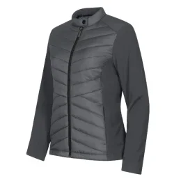 kombinácia prešívaného a softshellového materiálu strihané tvarované bočné panely zapínanie na gombíky stojací golier špirálový zips po celej dĺžke bočné vrecká so špirálovým zipsom vnútorné náprsné vrecko na zips pre označenie značky v zadnej podšívke