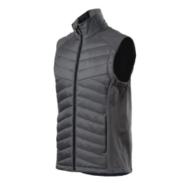 kombinácia prešívaného a softshellového materiálu rovný strih s bočnými panelmi špirálový zips po celej dĺžke s ochranou brady bočné vrecká so špirálovým zipsom vnútorné náprsné vrecko na zips tvarovaný a mierne predĺžený zadný panel značka v zadnej podšívke