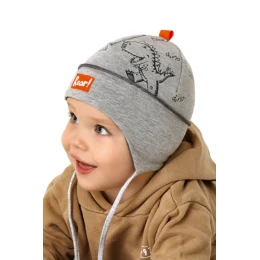 Viazaná chlapčenská čiapka s potlačou dinosaurov. Contr. sur. Materiál: 95% bavlna, 5% elastan