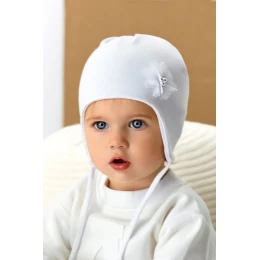 Dvojitá bavlnená pletená čiapka pre dievčatá s tylovým kvetom zdobeným perlami.Zloženie: 95% bavlna, 5% elastan