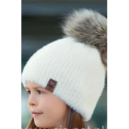 Dievčenská čiapka s bambulou, vyrobená zo spodnejóy vrstvy nadýchaného polyamidu.