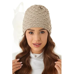 Dámska čiapka z podvrstvy z teplej vlny príjemnej na dotyk, zdobená vzorovaným prešívaním a malou, lesklou zirkónovou ozdobou.