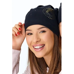 Dámska tenká čiapka z jednoduchej bavlny so zlatou aplikáciou. Zloženie: 95% bavlna, 5% elastan
