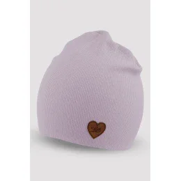 Dievčenská čiapka z podmerečnej rebrovanej bavlny s malou nášivkou. Zloženie: 95% bavlna, 5% elastan