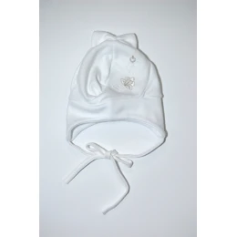 Dievčenský klobúk s ozdobnou mašľou a výšivkou.
