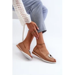 Czółenka Damskie Z Ozdobą Eko Skórzane Ciemnobeżowe Biolita
