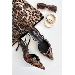 Czółenka Z Odkrytą Piętą I Paseczkami Panterka Brązowe Ravira