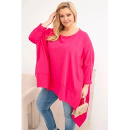 Dámska bavlnená tunika v nadmernej veľkosti s asymetrickým lemom Fuchsia