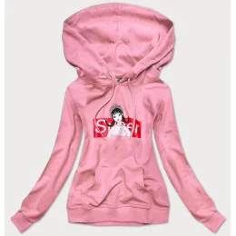 Dámska športová mikina vo špinavo ružovej farbe s kapucňou (N4596)