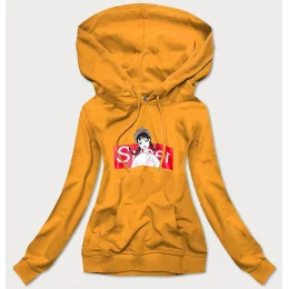 Dámska športová mikina v horčicovej farbe s kapucňou (N4596)