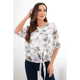Dámska blúzka s kvetinovým vzorom a khaki viazaním v spodnej časti