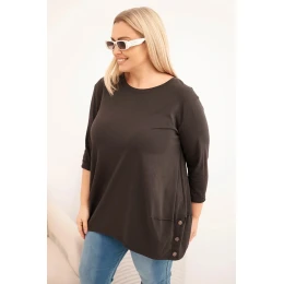 Dámska blúzka v nadmernej veľkosti z bavlny s ozdobnými gombíkmi a vyhrnutými rukávmi hnedej farby