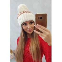 Dámska čiapka s brmbolcom Ellen K325 ecru