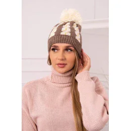 Dámska čiapka s brmbolcom Rozalia K323 ecru+mocca