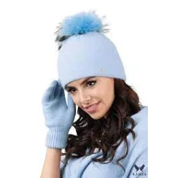 Dámska čepice¨s kožušinovou brmbolcom Mediolan-PN modrá - Kamea