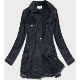Dámska čierna voľná bunda s výstrihom (LS9033)
