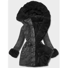 Dámska džínsová bunda s kožušinovou podšívkou čierna (B8068-101)