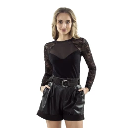 Dámska blúzka Enrica ELDAR - čierna - vyrobená z kvalitnej viskózy - výstrih z priehľadnej tkaniny - dlhé čipkované rukávy Zloženie materiálu: 65% viskóza + 30% polyamid + 5% elastan