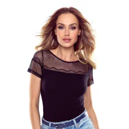 Dámska blúzka Risa Eldar - vyrobená z kvalitnej viskózy príjemnej na dotyk - krátke rukávy z priesvitného tylu - výstrih zdobený efektnou priesvitnou výšivkou Zloženie materiálu: 80% bavlna + 15% polyamid + 5% elastan