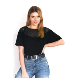 Dámska blúzka Solange Eldar - vyrobená z kvalitnej viskózy príjemnej na dotyk - krátke rukávy - výstrih zdobený efektnou priesvitnou výšivkou Zloženie materiálu: 85% viskóza + 10% polyamid + 5% elastan
