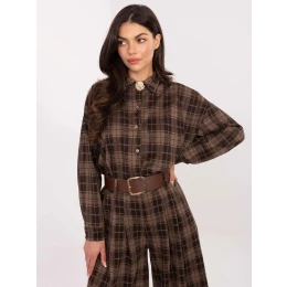 Dámska kockovaná flanelová košeľa hnedá (21638)