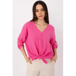 Táto dámska mušelínová bavlnená košeľa je ľahká, priedušná, v ležérnom štýle, ideálna na každý deň. Je vyrobená zo 100 % prírodnej bavlny, očarí svojou jemnosťou a pohodlím pri nosení, najmä počas teplejších dní. Hladká tkanina a klasický strih jej dodávajú univerzálny charakter a výstrih v tvare srdca jemne zvýrazňuje krk, čím dodáva ženský šarm. Košeľa má 3/4 rukávy, vďaka čomu je praktická a skvelá na väčšinu roka. Štandardná dĺžka a zapínanie na gombíky umožňujú nosiť ju buď voľne, alebo zastrčenú do nohavíc či sukní. Skvelá voľba na každodenné oblečenie od kancelárie až po prechádzku a stretnutie s priateľmi.