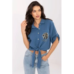 Elegantná dámska košeľa v ležérnom štýle, ktorá je ideálna na každý deň. Je vyrobená z priedušnej prírodnej bavlny a poskytuje pohodlie počas celého dňa. Krátka dĺžka a viazanie v spodnej časti jej dodávajú ľahký a dievčenský vzhľad a 3/4 rukávy sú skvelé na teplejšie dni. Košeľa sa zapína na gombíky a má klasický golier, čo jej dodáva univerzálny a voľný vzhľad. Na úrovni hrudníka sa nachádza praktické vrecko zdobené jemnou potlačou, ktorá dodáva decentný, ale módny nádych.