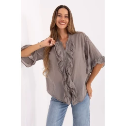 Klasická dámská halenka v boho stylu je ideální volbou na každý den i do práce. Vyrobená z prodyšné, měkké bavlny, poskytuje pohodlí po celý den. Hladký materiál v kombinaci s jemnými detaily dělá halenku elegantní, ale s nádechem volnosti charakteristické pro styl boho. Model standardní délky má rukávy 3/4 zakončené volánem, který dodává lehkost a ženský půvab. Výstřih do V opticky zúží krk, a klasické zapínání na knoflíky umožňuje snadné oblékání a přizpůsobení. Dalším akcentem je jemný volánek vpředu, který prolomuje klasický tvar a dodává halence výjimečný charakter. Jedná se o univerzální model, který se skvěle hodí jak do pracovních stylizací, tak do každodenních, více volných outfitů.