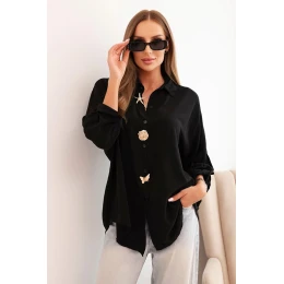 Dámska košeľa s viskózou, ozdobnými gombíkmi a golierom čierna