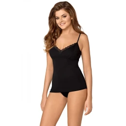 Dámska košieľka Luna Babell - z kvalitnej a veľmi príjemnej bavlny - čierna farba - výstrih v tvare "V" - ozdobený čipkou s kvetinovým motívom - tenké ramienka - pohodlne sa nosia