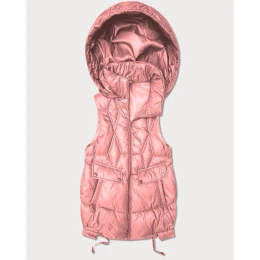 Dámska krátka bunda bez rukávov Goodlookin s odnímateľnou kapucňou ružová (B8258-81)