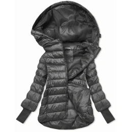 Dámska krátka bunda s pletenými rebrovanými lemami, grafitová (P22/P3-6636/P3-6023-27)