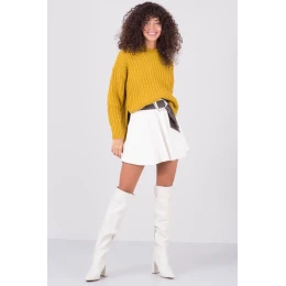 Mini sukňa z ekologickej kože v ecru farbe. Sukňa na zips.