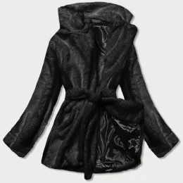 Čierna dámska bunda - kožúšok s golierom (GSQ2166)